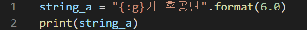 format()함수에 매개변수로 6.0이 들어갔지만 :g 기능으로 인해서 소수점이 제거되었습니다.