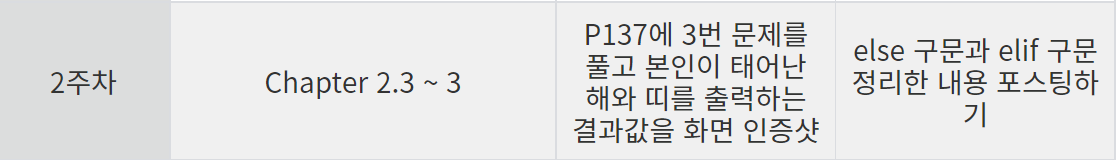 2주차 과제는 표와 같은데요 한번 시작해볼께여!!