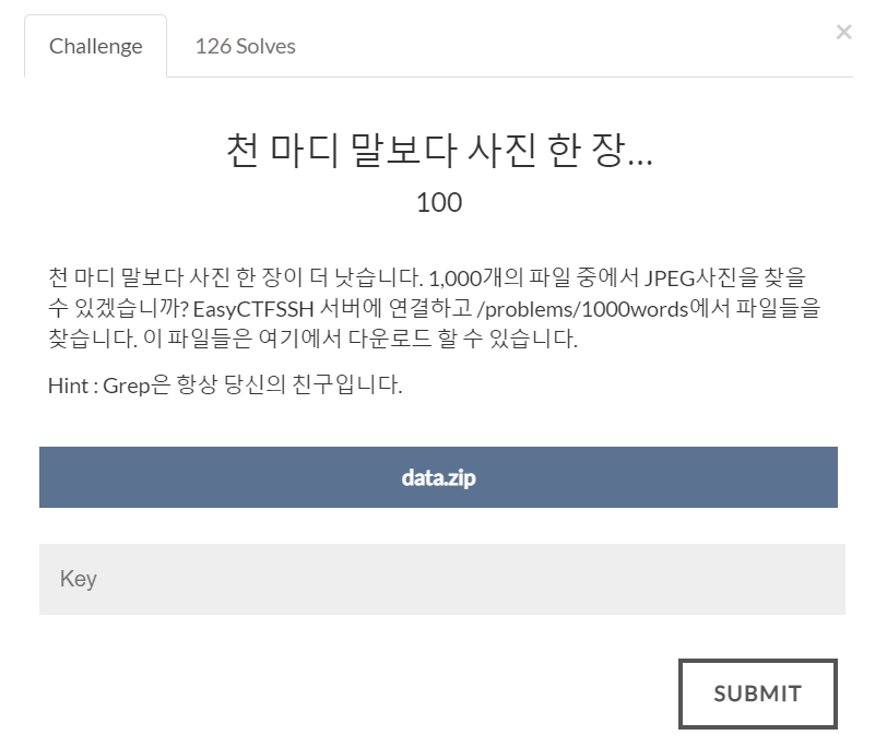 문제를 보면, 1000개의 파일이 존재하는데 이 중 jpeg로 된 사진만 찾으면 됩니다.
