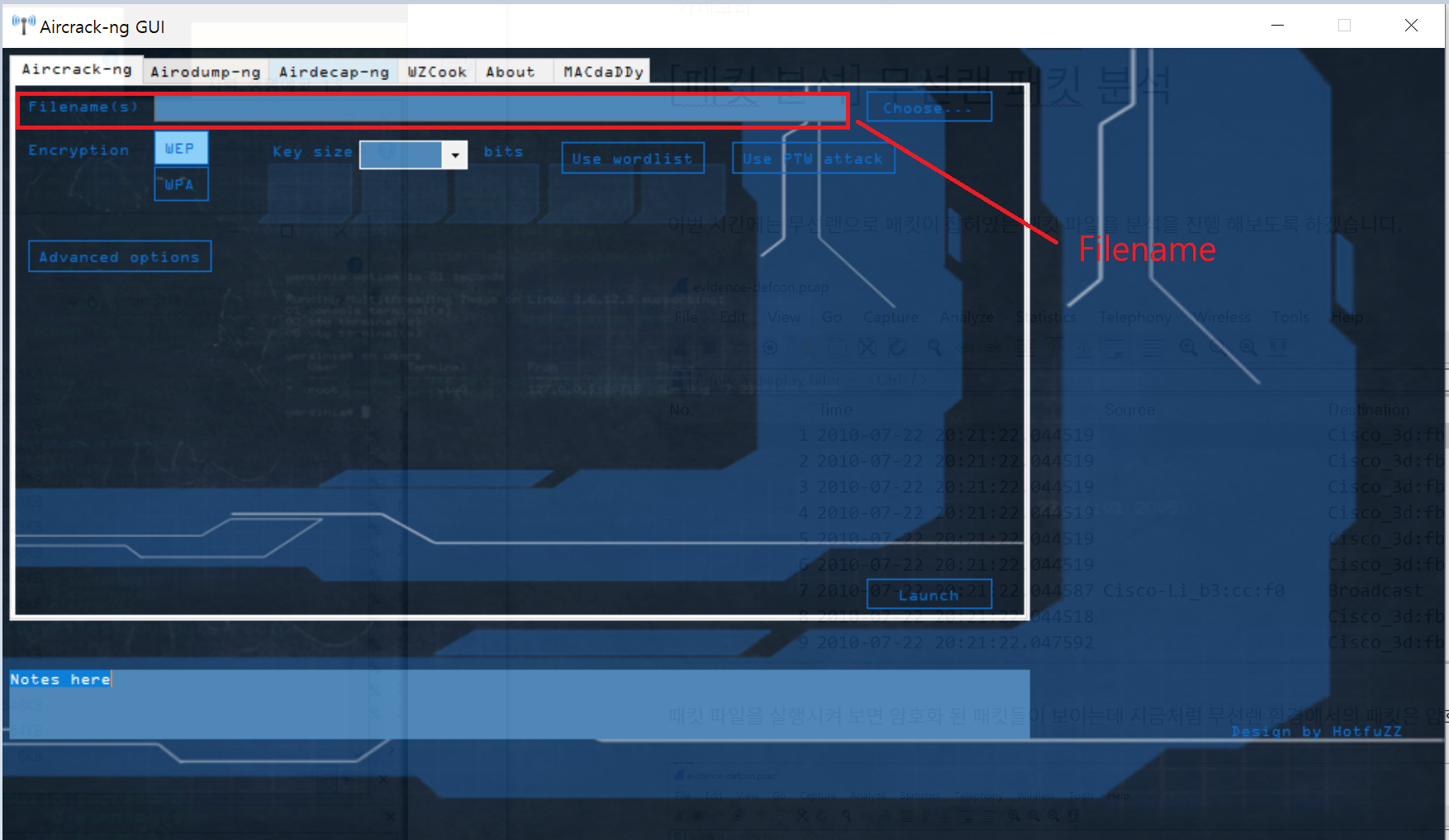 먼저, Filename란에 Choose를 클릭하여 키를 뽑아 낼 패킷 파일을 집어 넣습니다.