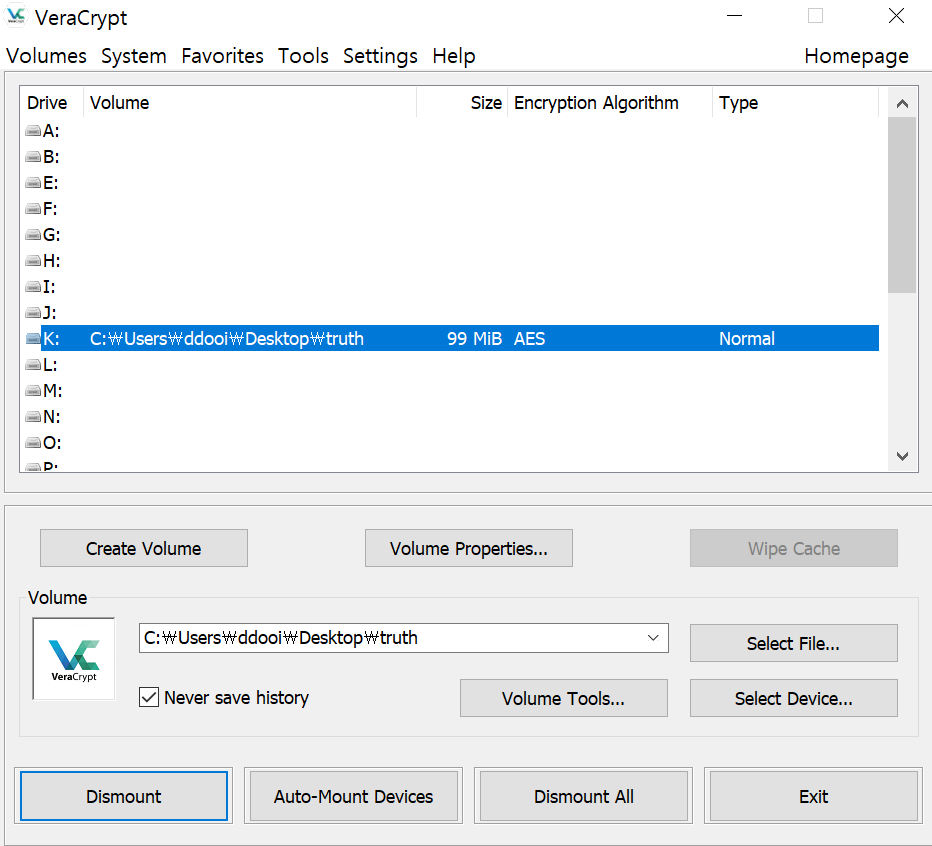 문제를 다시 한번 살펴보니 아내의 컴퓨터에서 암호화된 파일 키워드와 추가 정보에 패스워드라는 키워드가 있어서 디스크 파일임을 추측할 수 있었다.