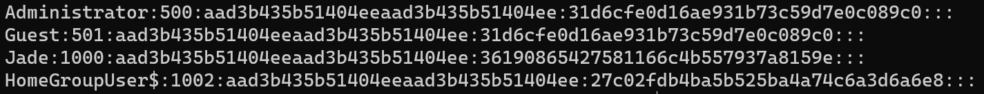 volatility_2.6_win64_standalone.exe -f explore.raw --profile=Win7SP1x64 hashdump