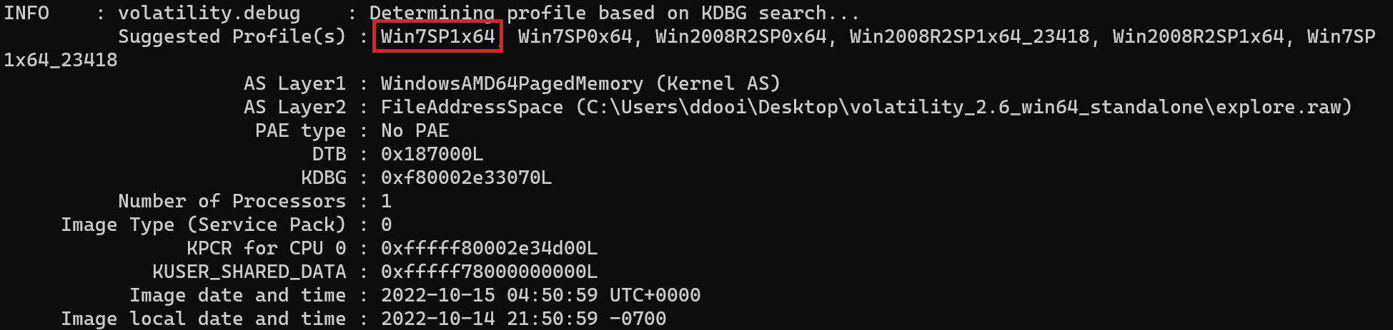volatility_2.6_win64_standalone.exe -f explore.raw imageinfo