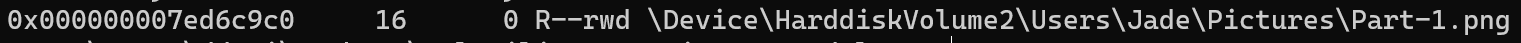Part-1.png라는 파일만 출력 된 것을 볼 수 있다. 메모리 주소를 알았으니 파일을 덤프를 떠보았다.