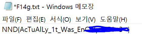 풀린 flag.txt파일을 보면 플래그값이 나와 있습니다.