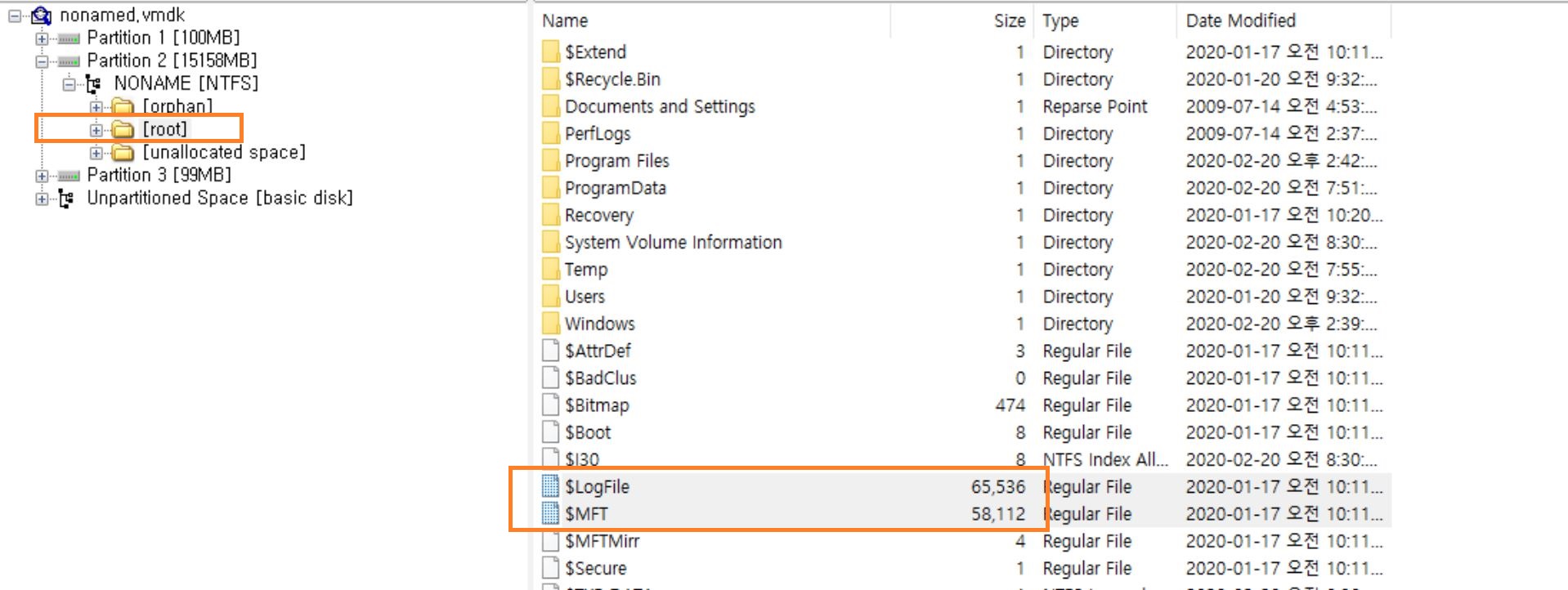 추출을 하기 위해선 파일의 경로를 알아야합니다. [root] 경로에서 $Logfile, $MFT 파일을 추출할 수 있고,