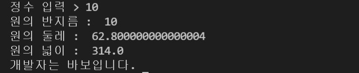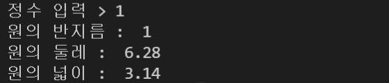③ 숫자로만 구성된 글자이면 반지름, 둘레, 넓이가 출력됩니다.