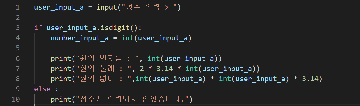조건문은 앞에서 배웠다시피 if문입니다. if문을 통해서 어떻게 예외 처리를 할 수 있을까요?? 답은 쉽습니다. 파이썬에서 기본적으로 제공하는 isdigit()함수를 이용하면 됩니다. isdigit() 함수는 숫자로만 구성된 글자인지 확인하는 함수입니다. 바로 코드를 보겠습니다.