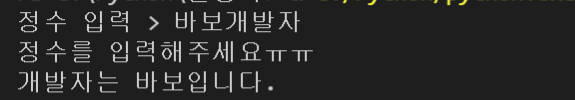 출력 결과를 보면 제가 내줬던 문제랑 같은 출력값이 나오는게 보이시나요??? 이처럼 코드는 이때까지 배운것을 하나씩 활용하면서 원하는 프로그램을 만들어보는 시간을 가졌으면 좋겠습니다. 그럼 지금까지 예외와 에러에 대해서 배워보았습니다.